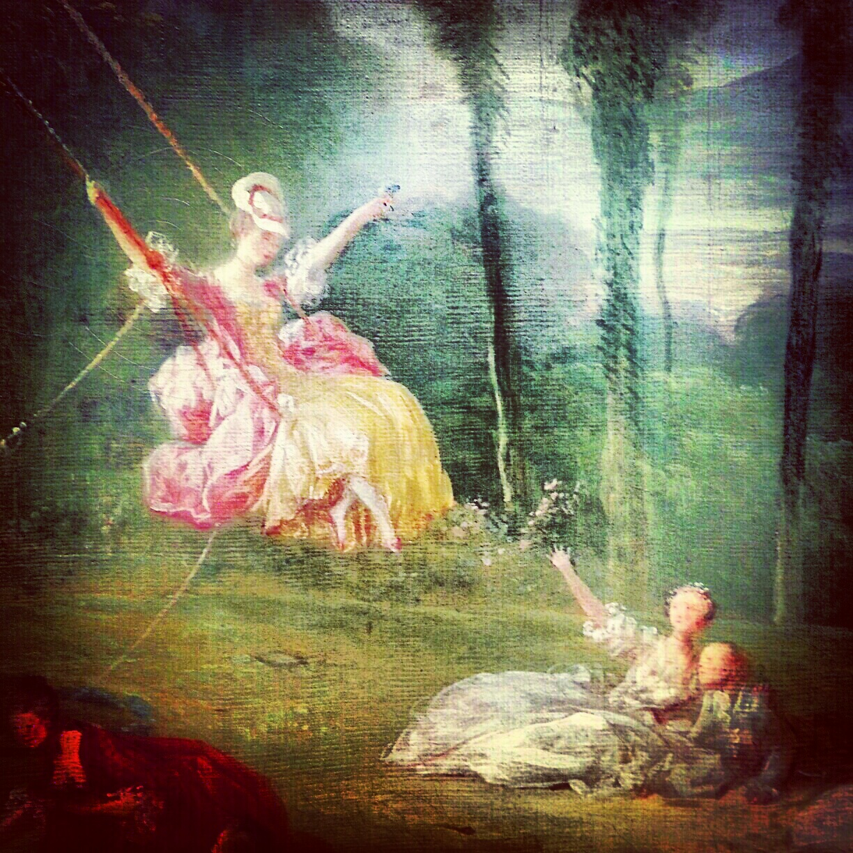Fragonard’s Girl On A Swing lives in the precious Wallace Collection in London, but here in Washington on a vast canvas was another girl on a another swing by the same artist…